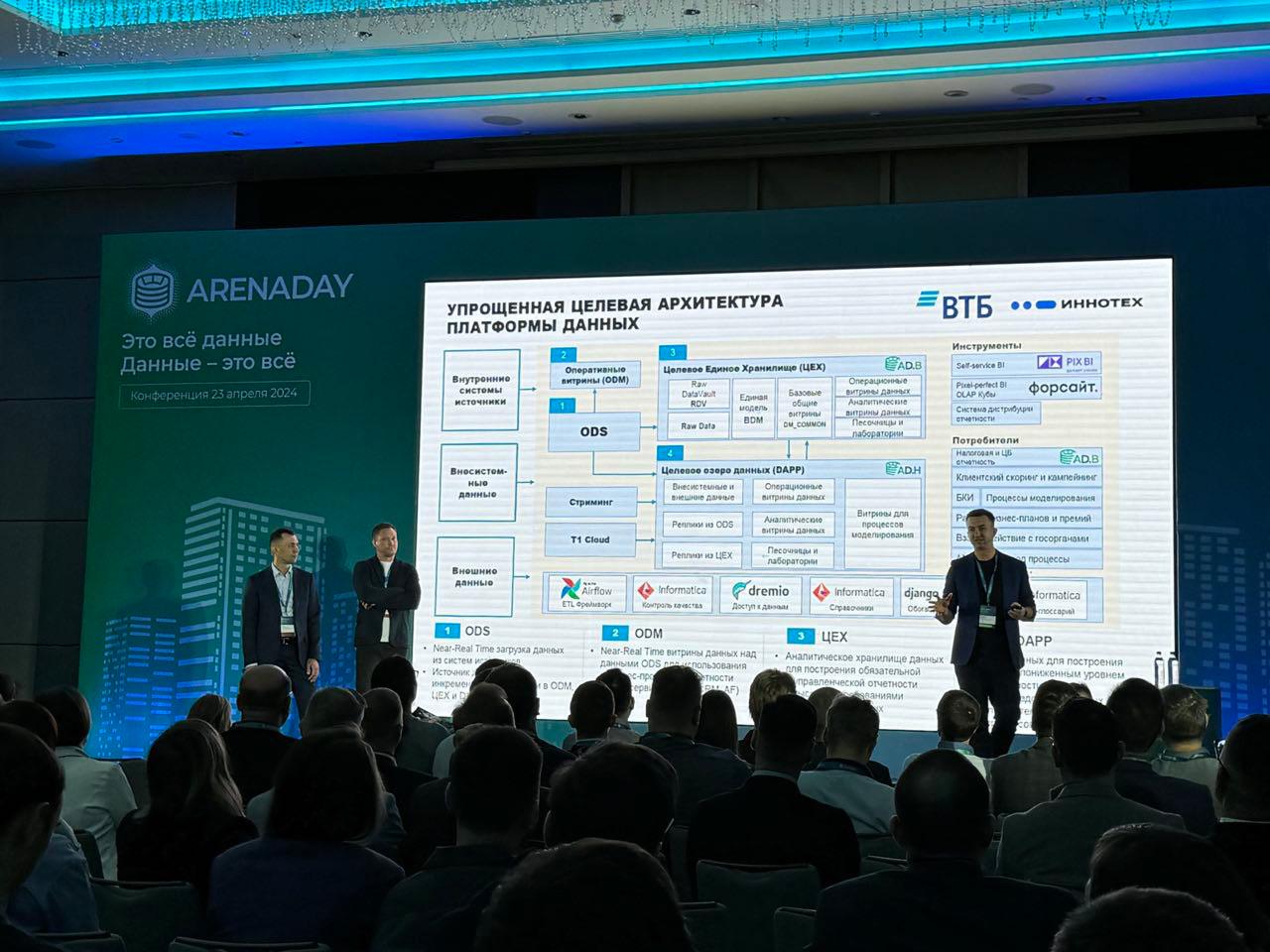 Владимир Громов, директор дивизиона технологического развития платформы данных и отчетности в ГК «Иннотех», поделился информацией о своем выступлении на предыдущей конференции, когда он рассказывал о главном дата-проекте для заказчика ВАО ВТБ, представил первые результаты работы. Сегодня команда уже в расширенном составе представила первое «боевое» решение на платформе – отчетность по инвайту. Более полугода прошло с момента запуска продукта в промышленную эксплуатацию, и ключевые заказчики, финансовые депутаты и представители бизнес-сообщества активно пользуются результатами, что способствует дальнейшему развитию торгового социализма. Особое внимание уделено тому, что работа в рамках цифровых трансформаций ВТБ осуществляется в тесном сотрудничестве бизнеса и ИT, что стало ключевым фактором успешной реализации проекта.