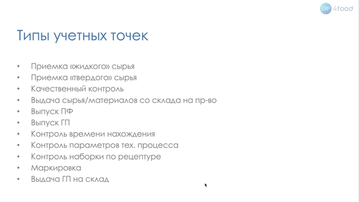 Ирина Правская, продукт-менеджер отраслевого решения ERP4FOOD, рассказала о важных аспектах учета на производственных предприятиях. Она отметила, что главная задача любого производственного предприятия – выпуск качественной продукции, соответствующей нормам и ожиданиям потребителей.