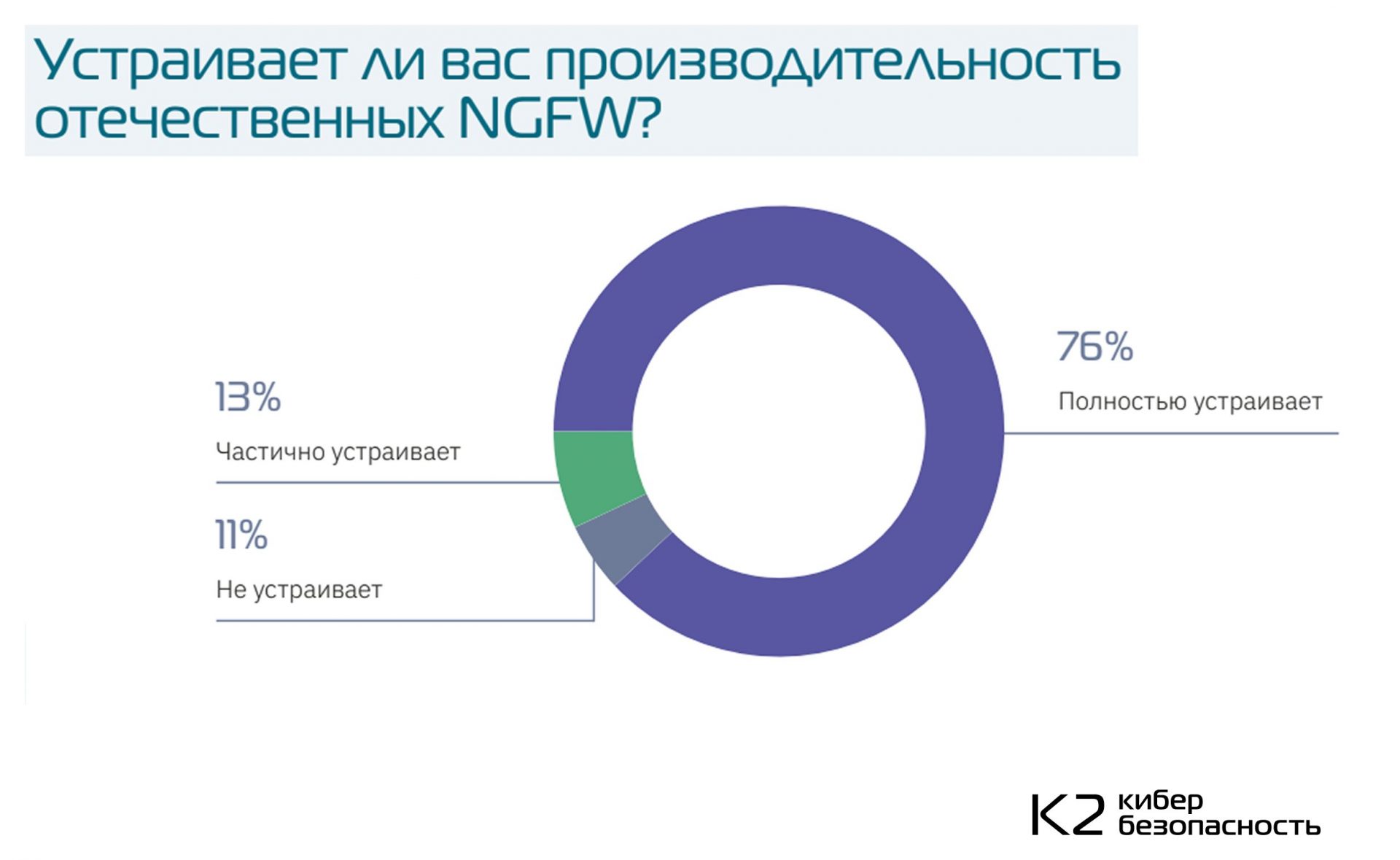 - При этом производительность отечественных NGFW частично или полностью устраивает 89% пользователей.