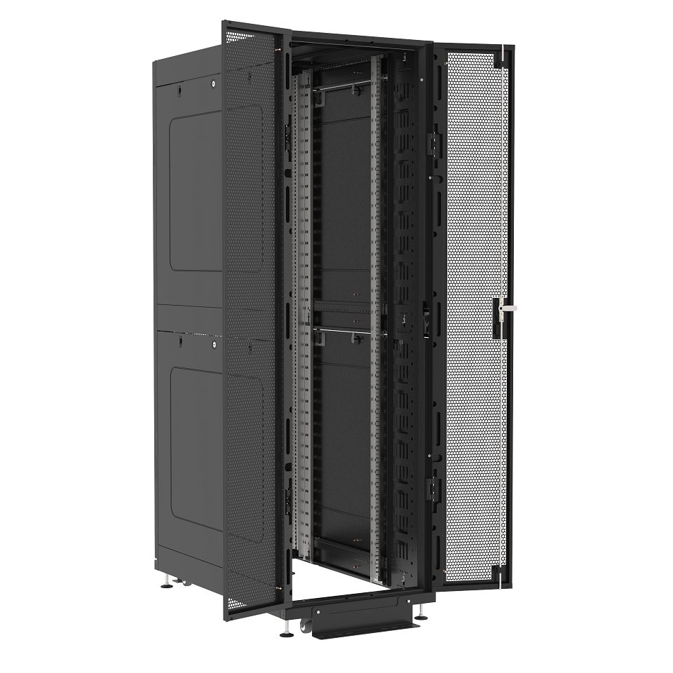 Гибкость и широкий спектр конфигураций и типоразмеров: 7 стандартных высот в юнитах — 18U, 22U, 27U, 33U, 37U, 42U, 47U. 4 варианта исполнения дверей: стеклянная (G), глухая металлическая (M), перфорированная (P) и двухстворчатая перфорированная (2P). Глубина доступна в трех вариантах — 600 мм, 800 мм и 1000 мм.