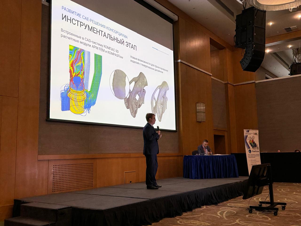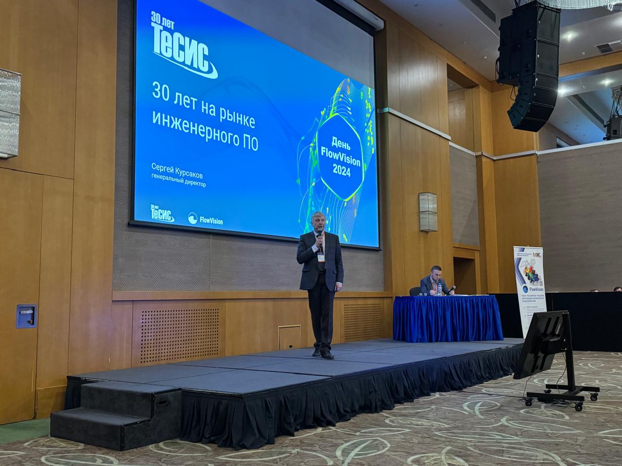 Сергей Курсаков, генеральный директор компании ТЕСИС, открыл мероприятие с приветственным словом, отметив значимую веху – 30-летие компании. «На протяжении этого периода мы занимались многими направлениями деятельности для автоматизации инженерного труда, но всегда нашей стратегической основной задачей была разработка собственного программного обеспечения», – подчеркнул докладчик. В качестве флагманского продукта он выделил программный комплекс FlowVision, который стал результатом многолетней работы команды.
