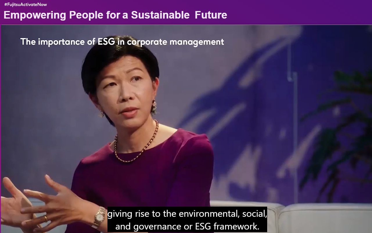 Такахито Токита, с интересом слушавший госпожу Кэти Мацуи, поделился с ней тем, как компания Fujitsu инкорпорирует в свою стратегию развития концепцию ESG.