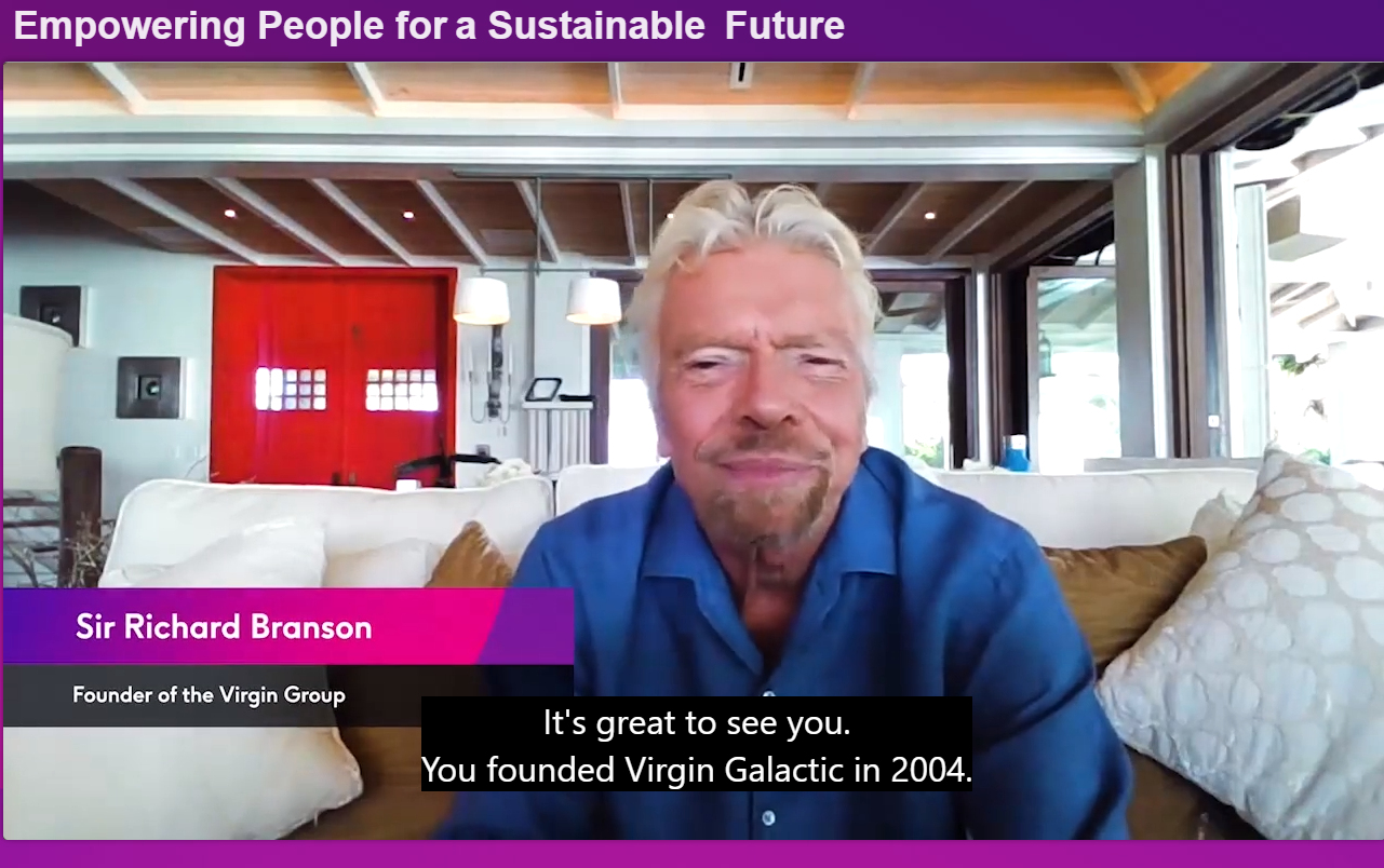 Обратившись к теме углеродно-нейтрального общества, Ричард Брэнсон заявил о том, что компания Virgin Group собирается сократить выбросы в атмосферу уже к 2030 году: «Мы считаем, что 2050 год, на который ориентируются большинство стран и компаний, – это слишком поздно. Мы сейчас работаем над решением проблемы зеленого авиационного топлива, развиваем зеленую энергетику – ветряки и солнечные электростанции».