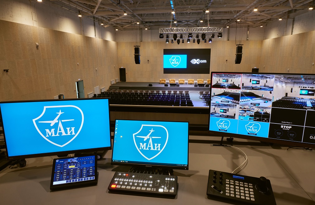 Группа компаний X-Com разработала и внедрила современные мультимедийные системы в малом и большом актовых залах в новом корпусе МАИ на Оршанской. Все решения были разработаны с нуля, от кабельных коммуникаций до системы управления.