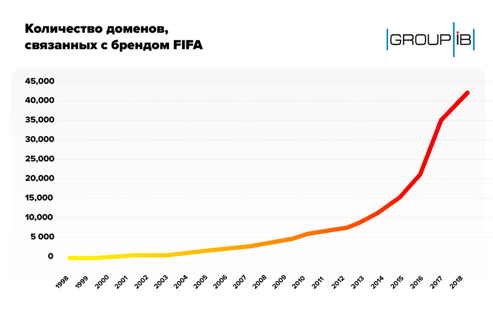 Впервые эксперты Group-IB представили аналитику по десяткам тысяч потенциально опасных сайтов, зарегистрированных под ЧМ2018, в феврале этого года. В названиях их доменов активно используются такие слова как «FIFA», «Russia», «WorldСup2018», «tickets», «чемпионат мира» и их различные комбинации. В феврале 2018 года количество этих сайтов составляло 37 000. Уже в мае эта цифра достигла отметки в 42 000 и продолжает расти.