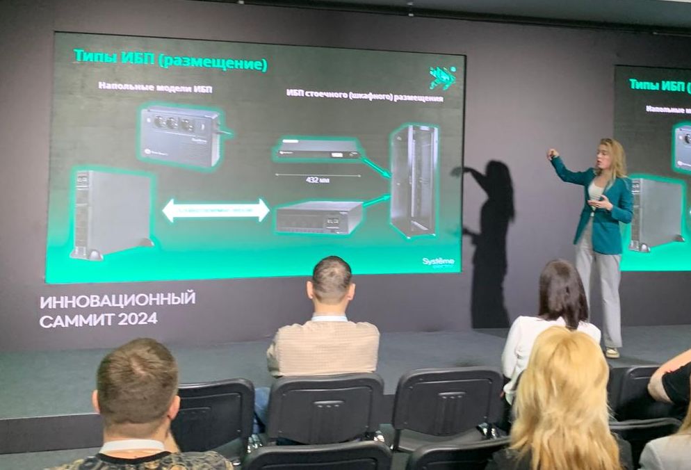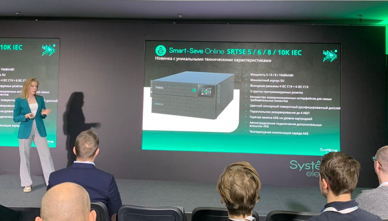 На Инновационном саммите 2024 компания Systeme Electric объявила о начале производства однофазных источников бесперебойного питания Smart-Save Online SRT большой мощности (от 5 до 10 K IEC). Устройство выполнено в монолитном корпусе размером 5U, оснащенном картриджем замены 32 аккумуляторных батарей, выходными розетками, цветным сенсорным дисплеем и интуитивно понятным управлением. «Вишенкой на торте» представители компании называют наличие портов коммуникаций с аккумуляторными батареями.