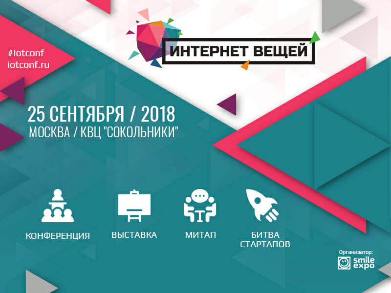 25 сентября компания Smile-Expo проведёт в Москве V международную конференцию «Интернет вещей» – главное событие России, посвящённое передовым IoT-достижениям. Гости IoT-форума протестируют новые продукты Интернета вещей, наладят бизнес-связи и узнают, как внедрить современные разработки в производство.