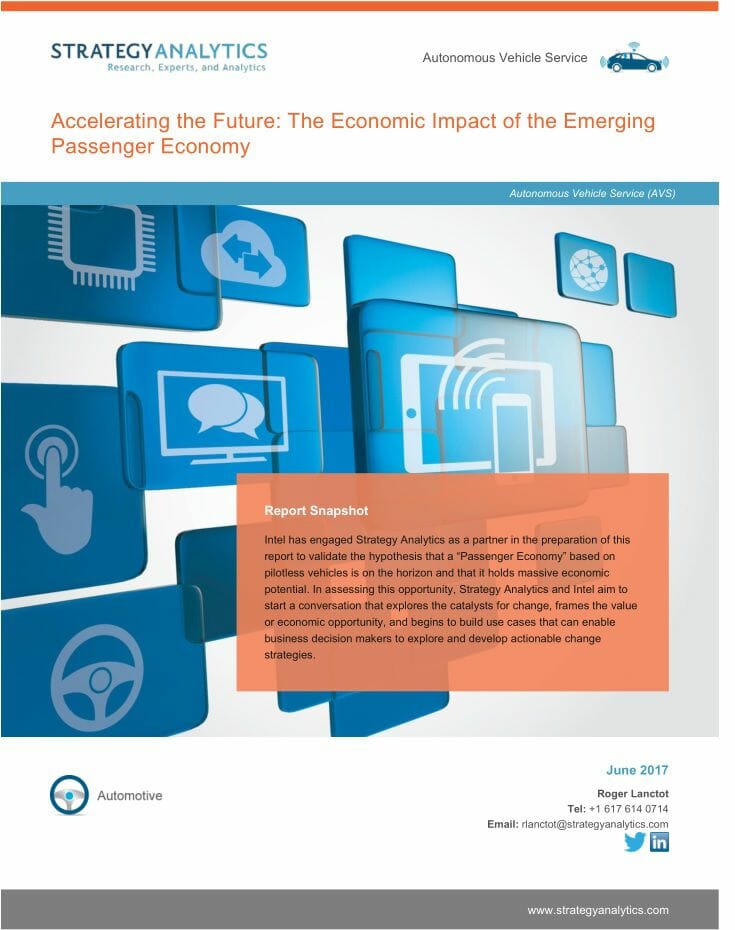 САНТА-КЛАРА, Калифорния, 1 июня 2017 г. – Сегодня, в рамках дискуссии с Уолтом Моссбергом (Walt Mossberg) на ежегодной конференции Code Conference, главный исполнительный директор Intel Брайан Кржанич (Brian Krzanich) поделился результатами нового исследования, где был изучен потенциальный объём новой зарождающейся экономики, которая может возникнуть в процессе того, как водители постепенно становятся обычными пассажирами, не управляющими автомобилем. Благодаря Intel новая экономика получила название экономики пассажиров. По результатам анализа, проведённого специалистами компании Strategy Analytics, потенциал взрывного роста объёма новой экономики – от 800 миллиардов в 2035 году до 7 триллионов к 2050 году.