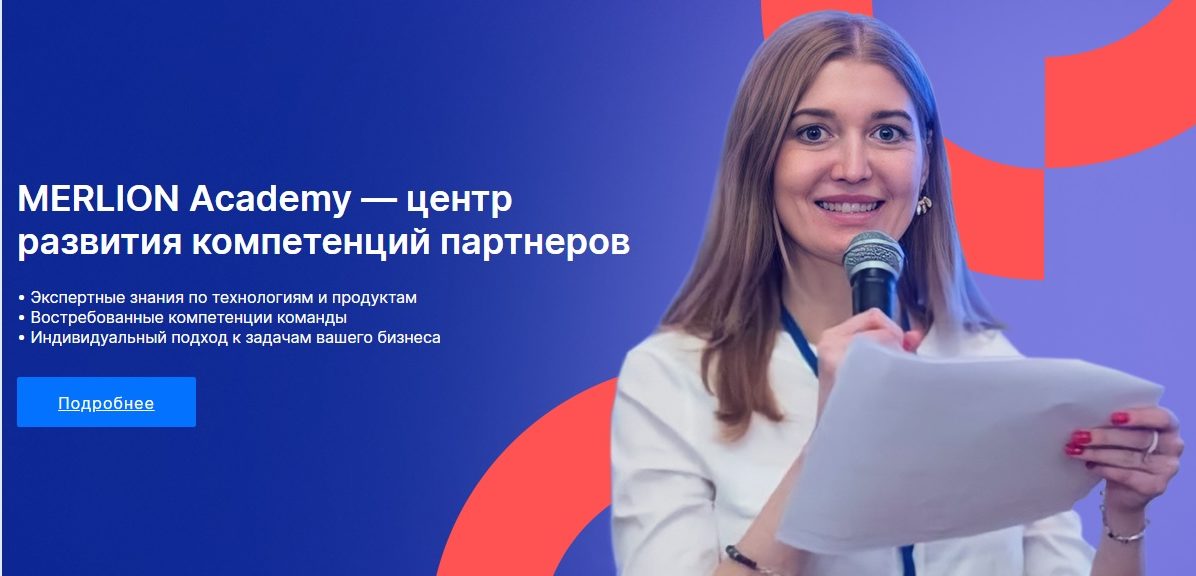 На сайте Merlion Academy (https://academy.merlion.ru/) компания анонсирует очные тренинги, вебинары, возможность записи на стенды для тестирования решений. Партнеры также могут познакомиться с экспертами, получить ответы на интересующие вопросы, подать заявки на проведение мероприятий в корпоративном формате.