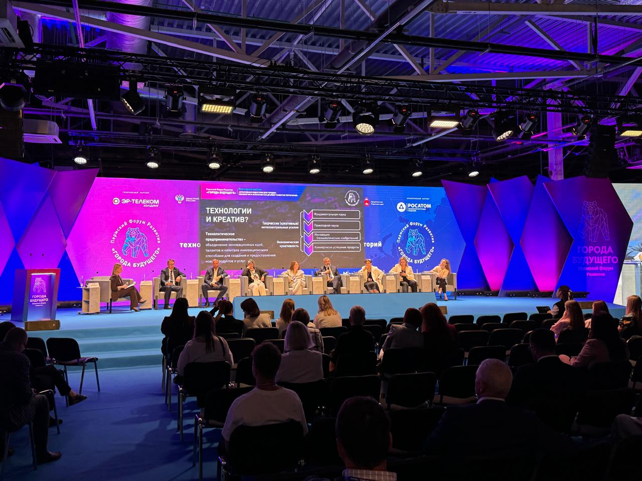На пленарной сессии форума была обсуждена роль креативных индустрий в развитии регионов и городов, акцентировалось внимание на том, как цифра может стать искусством и способствовать креативу в городской среде. Участники рассматривали меры поддержки креативной экономики и искали способы оценить эффекты от ее развития, подчеркивая, что человек является главной ценностью этой сферы. Обсуждались также вопросы о том, как креативная экономика поможет удерживать молодежь и создавать новые возможности в регионах.