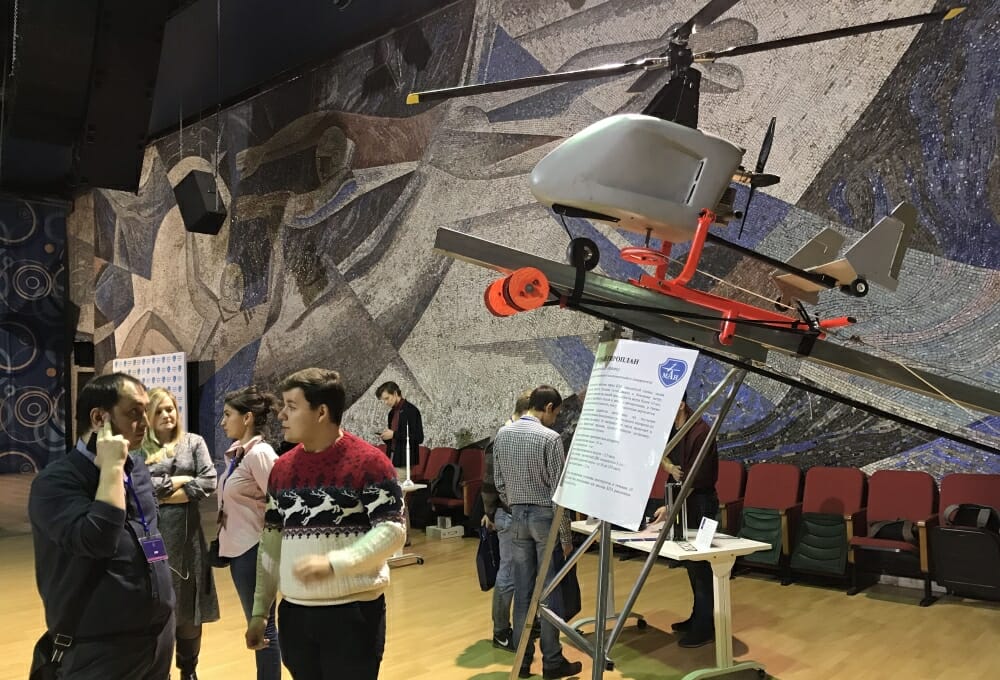 Студент 4-го курса третьего факультета МАИ Кирилл Гаврилин (научный руководитель Владимир Чемоданов) представил экспериментальный образец беспилотного гироплана, который можно использовать для аэрофотосъемки и решения сельскохозяйственных задач. Максимальная полетная масса аппарата – 25 кг, расчетное время нахождения в воздухе – 3,5 часа, диапазон рабочих скоростей полета – от 30 до 120 км/ч. По сравнению с БЛА гироплан отличается малой стартовой скоростью, большей устойчивостью к боковому ветру, возможностью зависать над землей при скорости ветра, превышающей 10 м/с, способностью аварийного спуска в режиме авторотации, а также значительно меньшей стоимостью. Наряду с гиропланом на выставке демонстрировались пускоразгонная установка и пилотажно-навигационная система. Примечательно, что на монтаж установки требуется не больше 10 минут, ее можно использовать для запуска беспилотных летательных аппаратов разных типов массой до 30 кг.