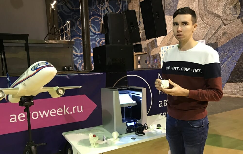 На выставке во Дворце культуры МАИ были представлены вузовские разработки, экспериментальные образцы техники, аппараты, устройства и другие готовые изделия. В частности, техник кафедры 904 лаборатории аддитивных технологий МАИ Антон Королев рассказал о технологиях и устройствах для 3D-печати, позволяющих изготавливать элементы крыла самолета и другие детали, оптимизированные с учетом возможностей данной технологии. В ходе презентации он отметил преимущества технологии селективного лазерного спекания, на базе которой можно печатать элементы любой формы, в том числе деталь внутри детали.