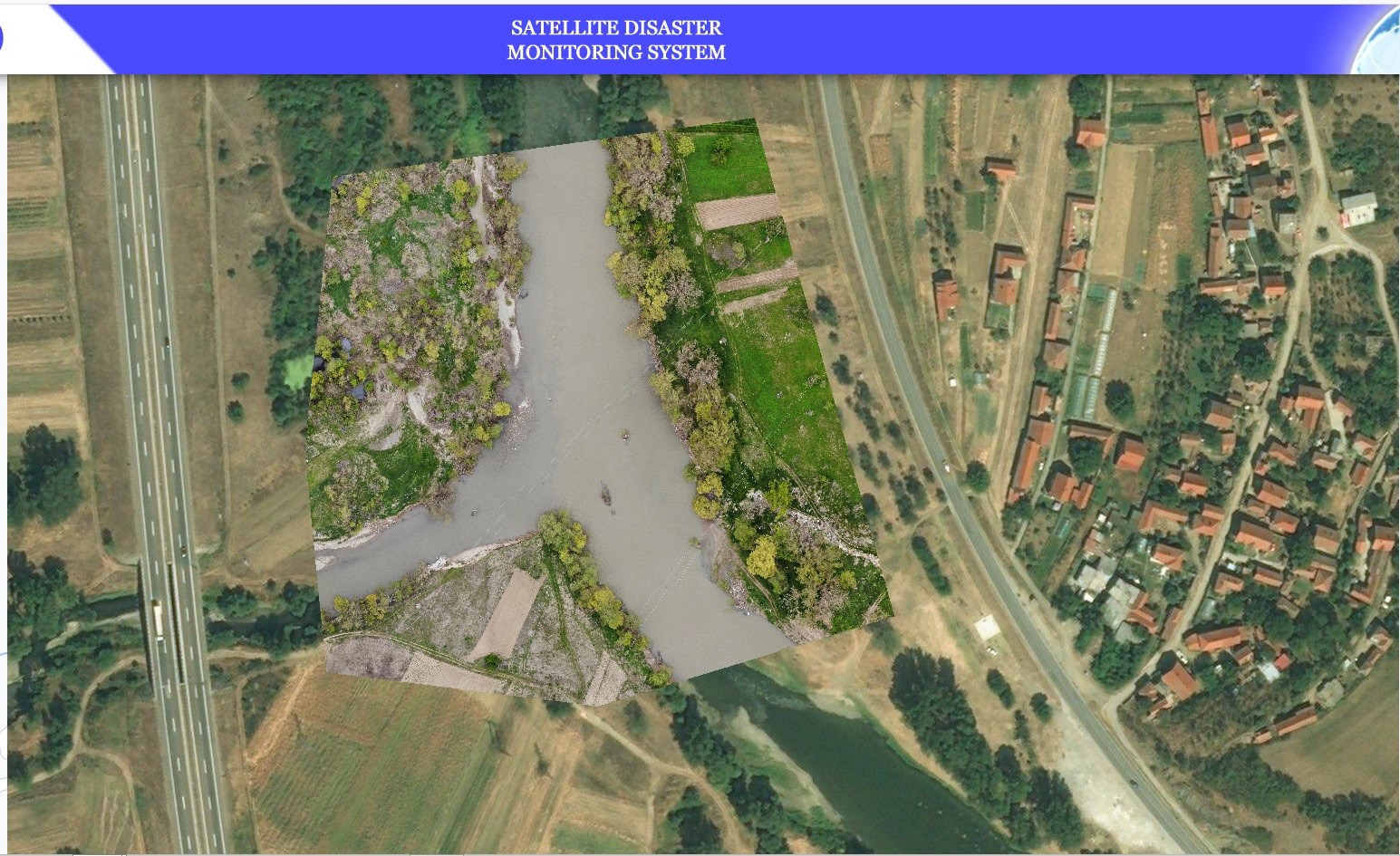 С помощью DJI Mavic Air с высоты 270 метров была произведена топографическая съемка этого участка местности. Данные были отправлены в «облако» международной организации гражданской обороны (МОГО), где наши коллеги произвели расчеты вариантов повышения уровня воды в реке с последующим прогнозированием подтопления населенного пункта и объектов инфраструктуры.