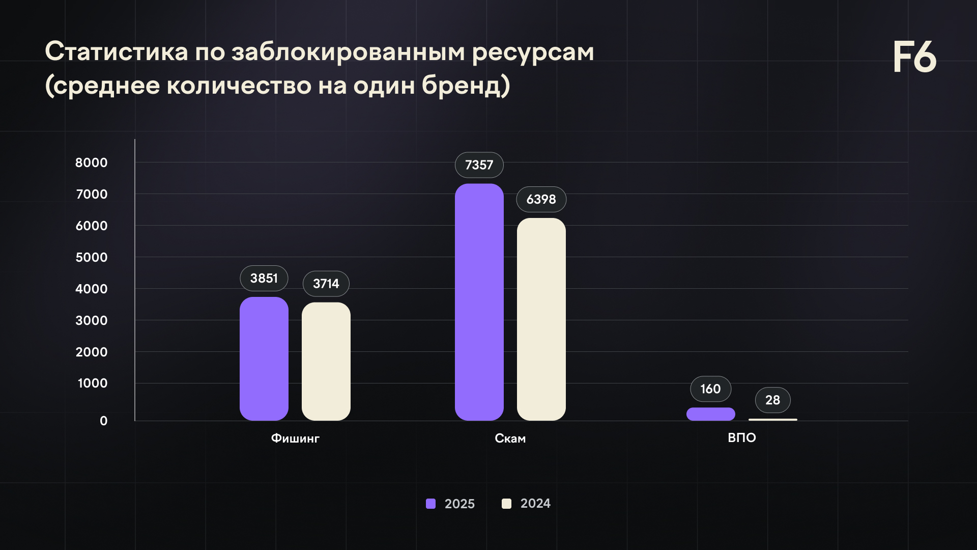 По данным аналитиков департамента Digital Risk Protection компании F6, в 2025 году на фоне усиления борьбы с мошенничеством наблюдался переход скам-групп от фишинга к скаму. Все чаще жертвы сталкиваются с ресурсами, которые вместо данных карт или личного банковского кабинета просят оплатить по QR-коду или реквизитам. На блокировку скама уходит больше ресурсов и времени, чем на фишинг, этим и пользуются мошенники.