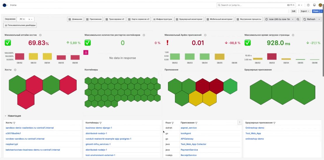 Подробно описывать процедуру демонстрации платформы – едва ли продуктивная затея. У желающих вникнуть в детали есть возможность запросить демо – достаточно зайти на сайт команды GMonit. Для небольших компаний доступна бесплатная версия Lite, предлагающая мониторинг производительности приложений с картой сервисов.