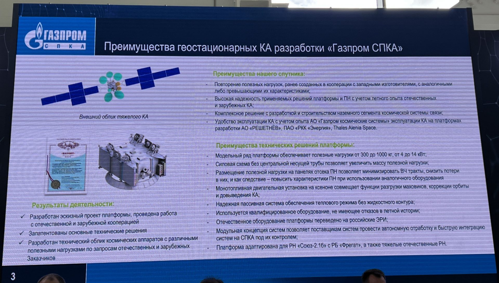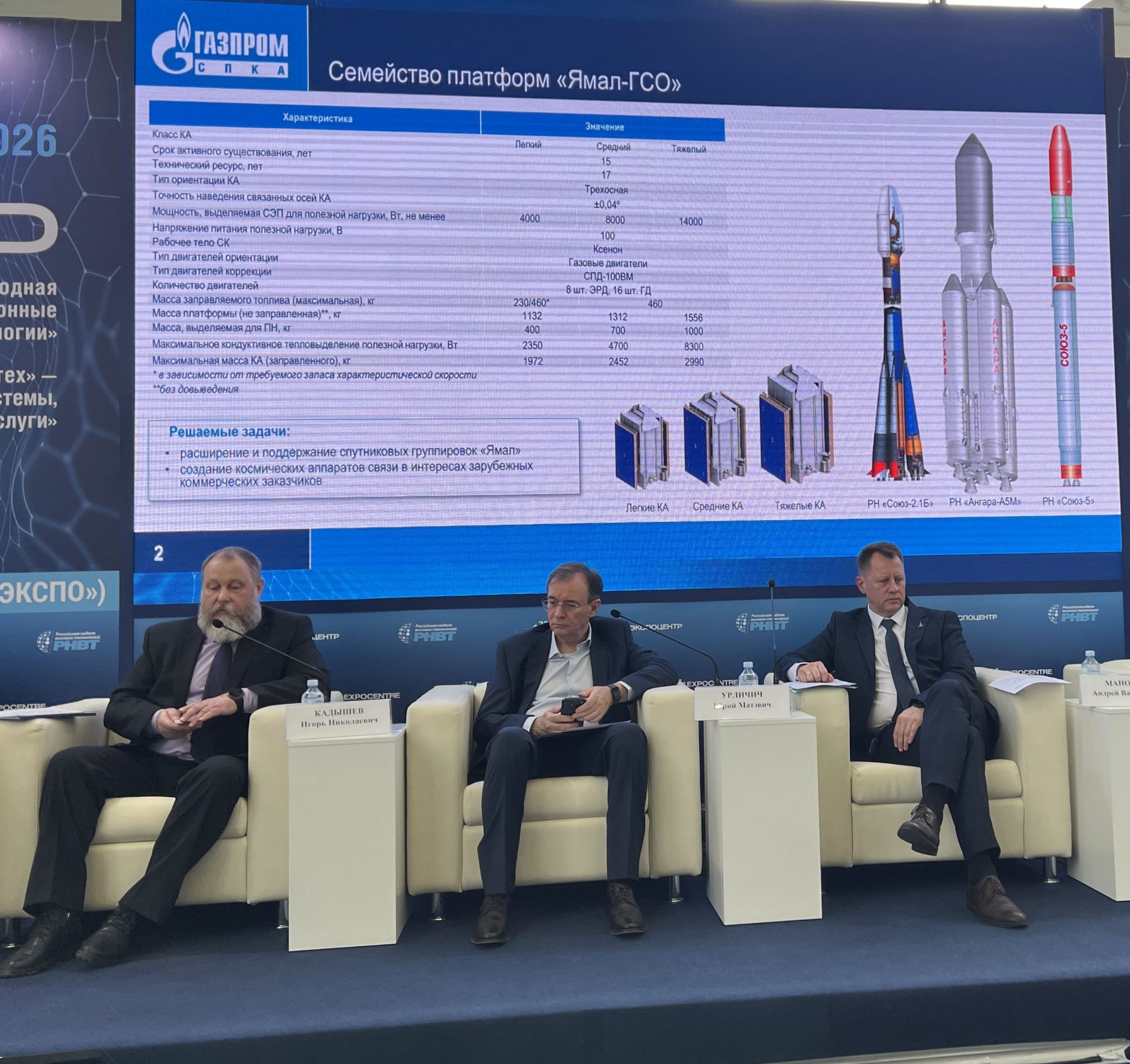 Главный конструктор – начальник конструкторского бюро компании «Газпром СПКА» Игорь Кадышев рассказал о семействе платформ «Ямал-ГСО» разных модификаций (в зависимости от масштабирования отдельных систем). В его составе легкие, средние и тяжелые космические аппараты, которые ориентированы на запуск отечественными ракетами-носителями.