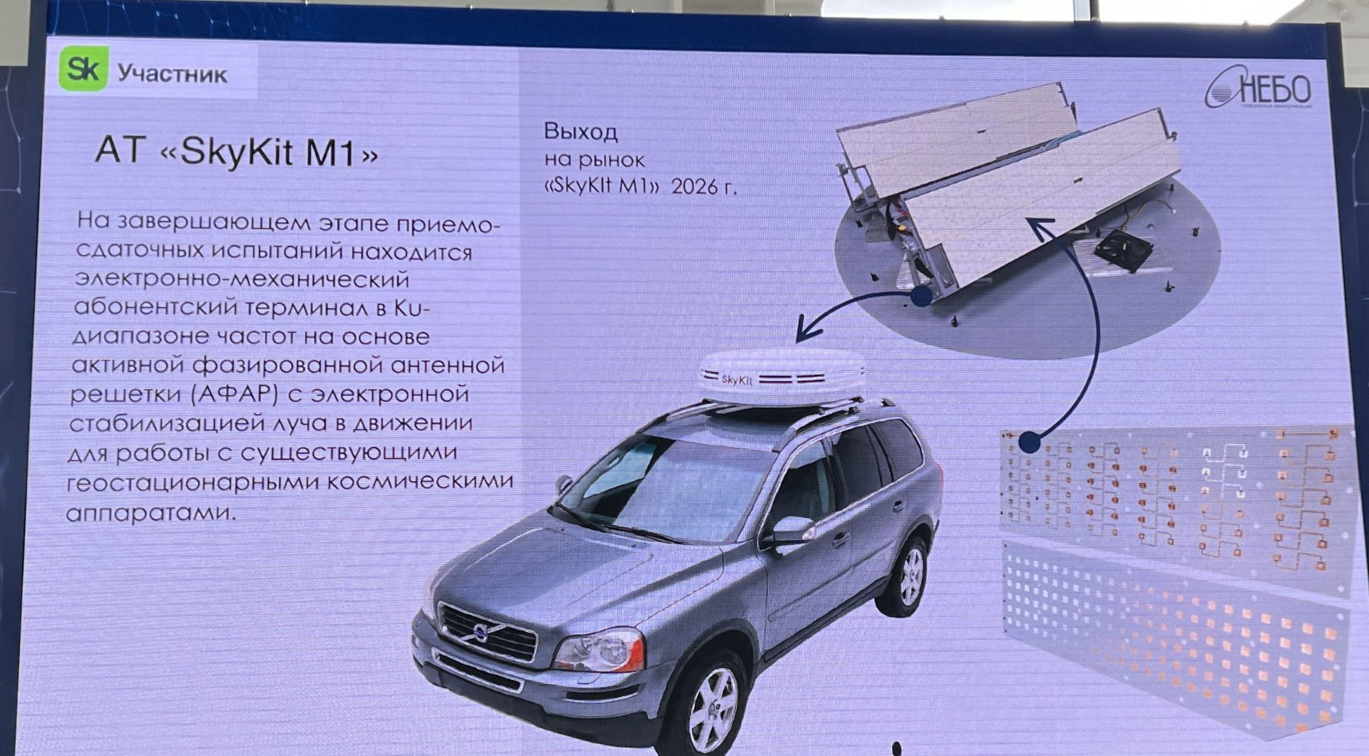 На завершающей стадии приемо-сдаточных испытаний находится электронно-механический абонентский терминал SkyKit «М1» в Ku-диапазоне частот на основе АФАР с электронной стабилизацией луча в движении. Его вывод на рынок ожидается в текущем году.