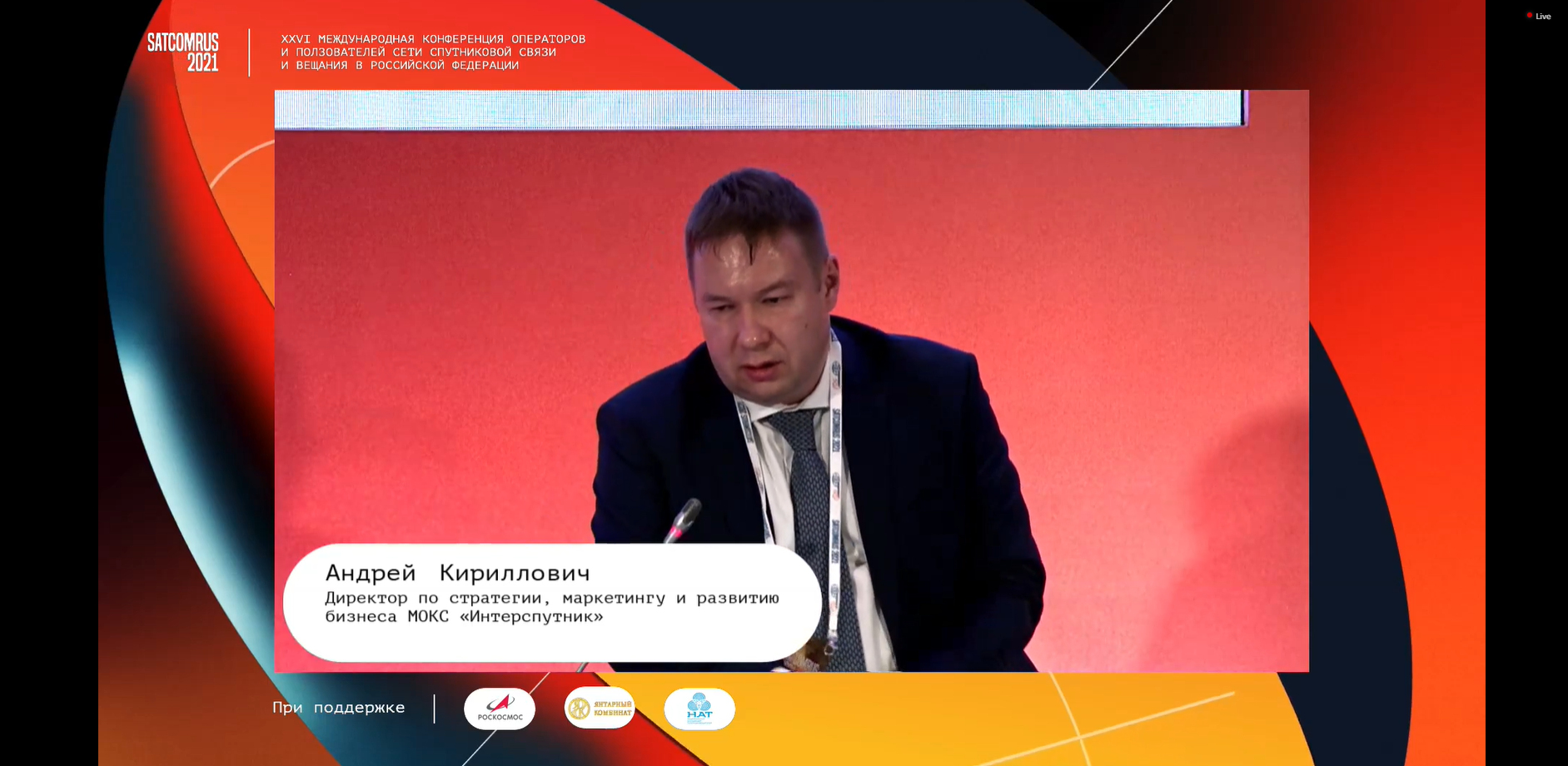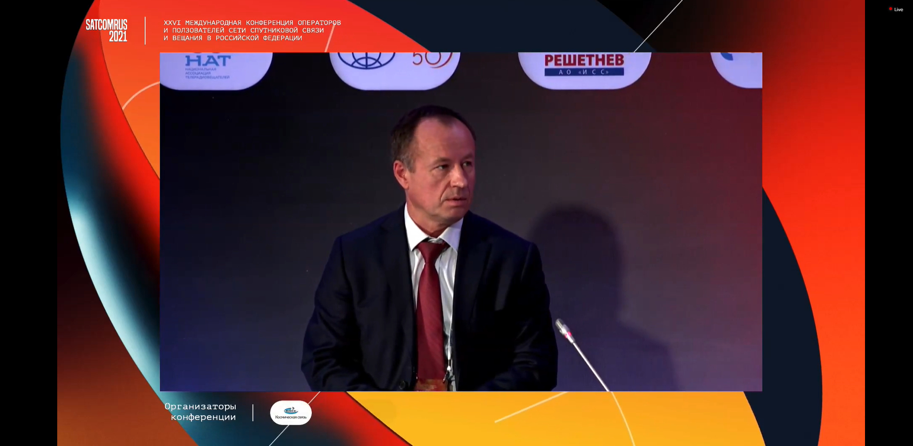 Выступление заместителя генерального конструктора по разработке космических систем, общему проектированию и управлению космическими аппаратами АО «ИСС имени Академика Решетнёва» Александра Кузовникова было посвящено спутниковой связи в Арктике. Он подробно проанализировал три перспективных проекта: систему на высоком эллипсе «Экспресс-РВ», НГСО-группировку «Скиф» и проект «Марафон-IoT».