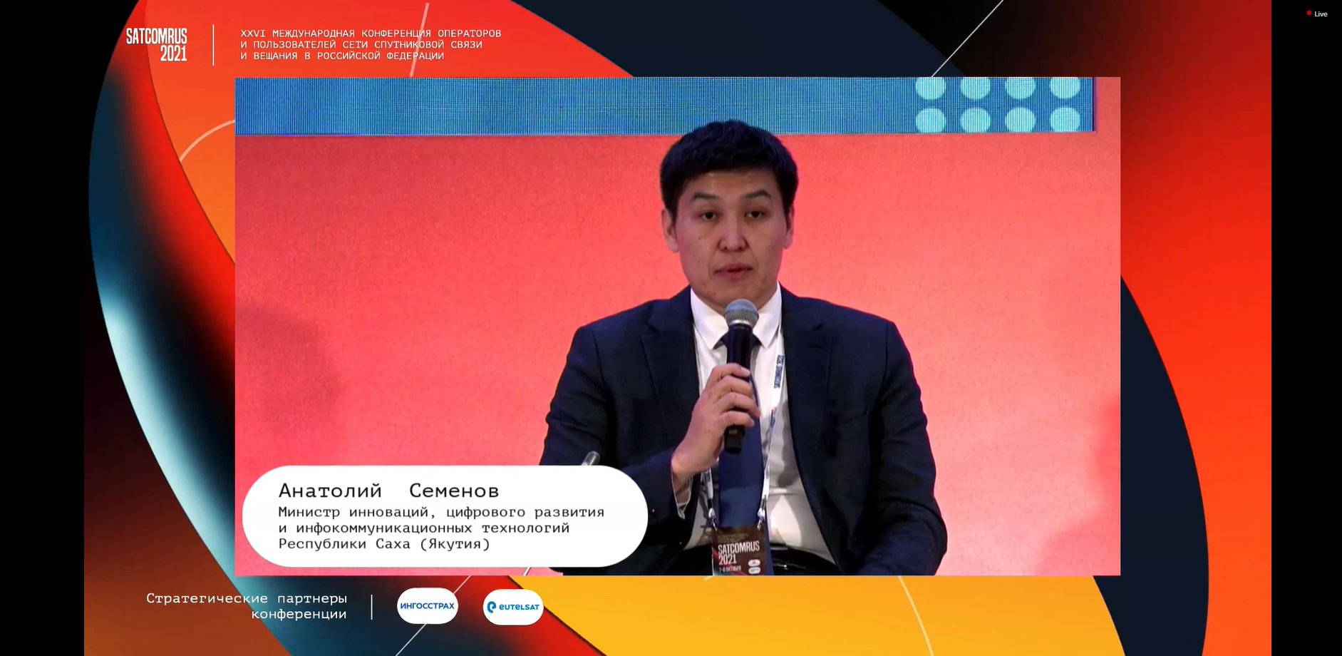 Министр инноваций, цифрового развития и инфокоммуникационных технологий Республики Саха (Якутия) Анатолий Семенов рассказал о том, как местные власти решают проблему цифрового неравенства и организуют каналы связи в отдаленных и труднодоступных населенных пунктах Республики. Особое внимание Анатолий Семенов уделил месту и роли спутниковой связи в телекоммуникационной экосистеме Якутии.