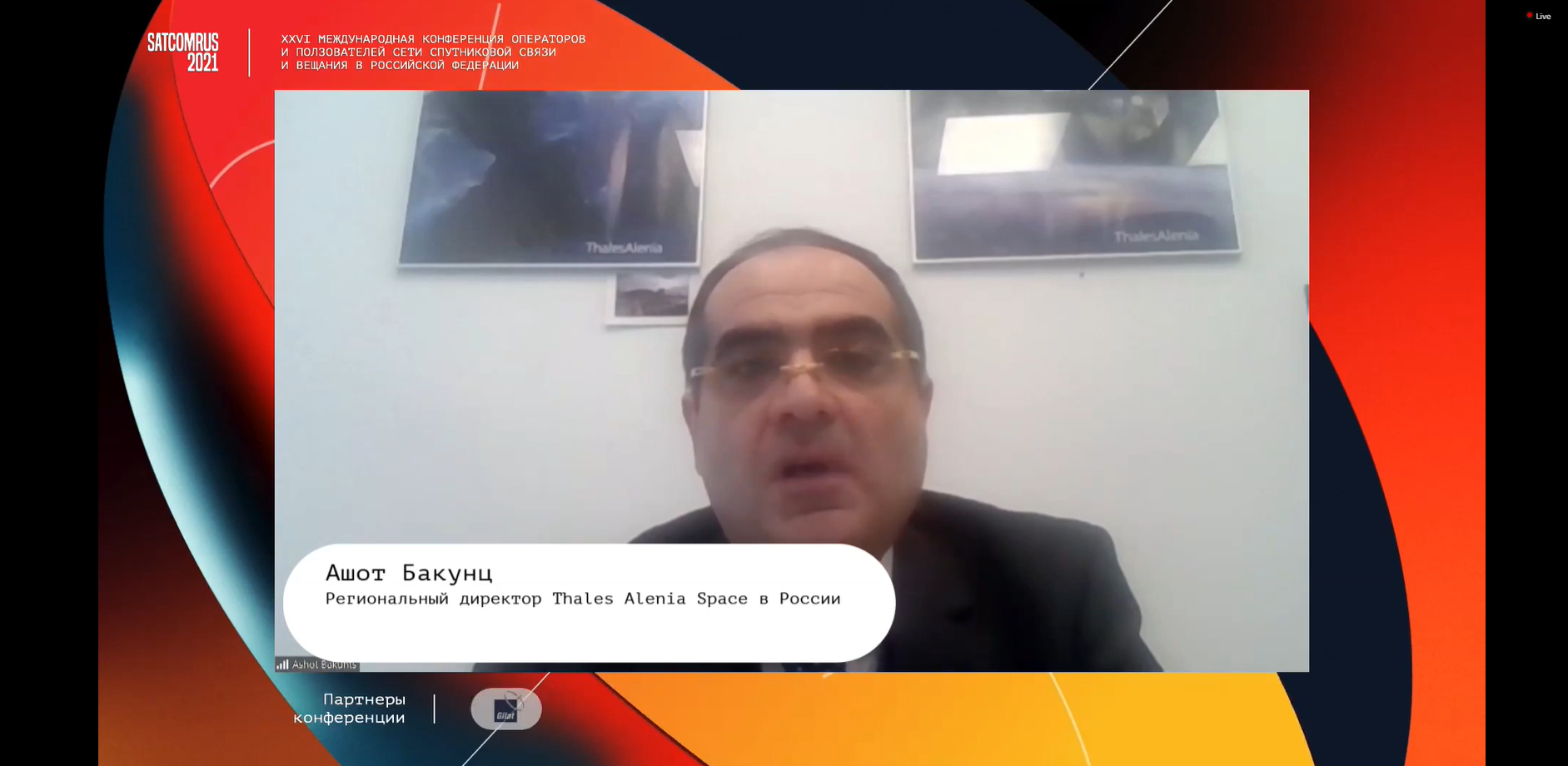 Региональный директор Thales Alenia Space в России Ашот Бакунц представил тенденции глобальной спутниковой индустрии, уделив особое внимание переходу на гибкие, гибридные решения, использование программно-определяемой «начинки» аппаратов: «Спутниковая индустрия, реагируя на изменения бизнес-моделей заказчиков, переходит от классических (аналоговых) аппаратов к гибким (цифровым) спутникам».