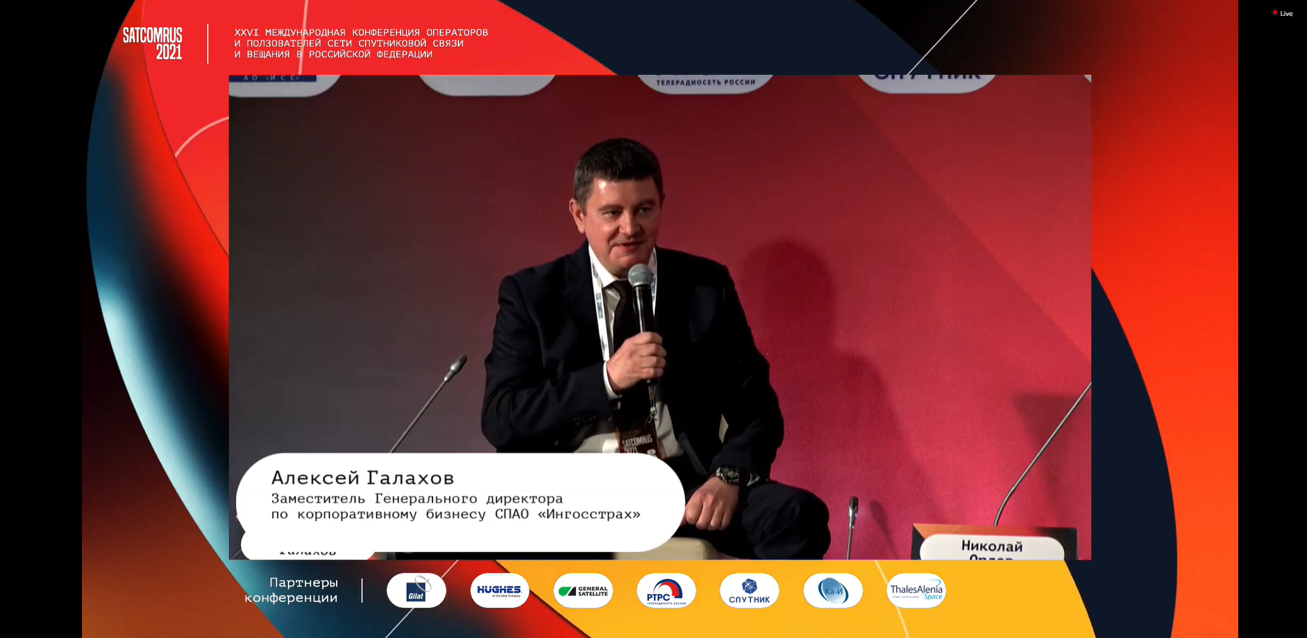 Заместитель генерального директора по корпоративному бизнесу СПАО «Ингосстрах» Алексей Галахов рассказал об особенностях страхования российских спутников. Доклад генерального директора аналитического агентства Euroconsult Пакома Ревийона (Pacôme Révillon) был посвящен ключевым глобальным тенденциям космической отрасли связи.