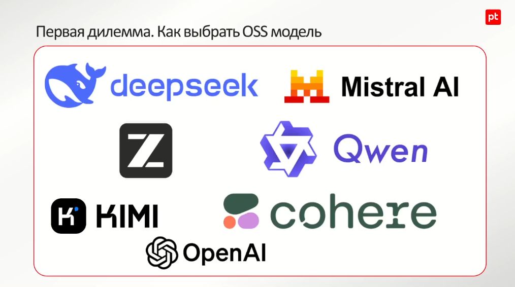 Тем, кто столкнулся с трудностями выбора модели, эксперт дал несколько рекомендаций. Не забывать, что цель не в том, чтобы найти лучшую модель, а в том, чтобы определиться с правильной моделью для конкретных обстоятельств. Критериев оценки в данном случае несколько: насколько хорошо модель справляется с вашей задачей, размер модели и «железо» (что можно себе позволить), лицензионный аспект (можно ли легально использовать модель в коммерческих целях), наличие экосистемы и поддержки (насколько активно сообщество вокруг модели).
