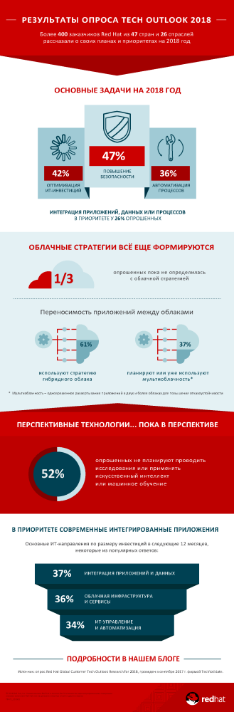 Мы также подготовили инфографику по результатам опроса Red Hat Global Customer Tech Outlook 2018.