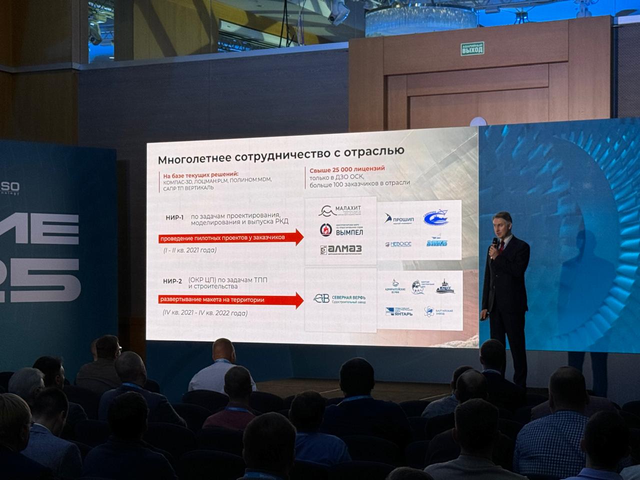 С докладом на эту тему выступил Александр Петров, директор департамента развития отраслевых решений для судостроения АСКОН. Спикер представил актуальные разработки компании и рассказал о новых подходах к проектированию в тяжелом машиностроении.