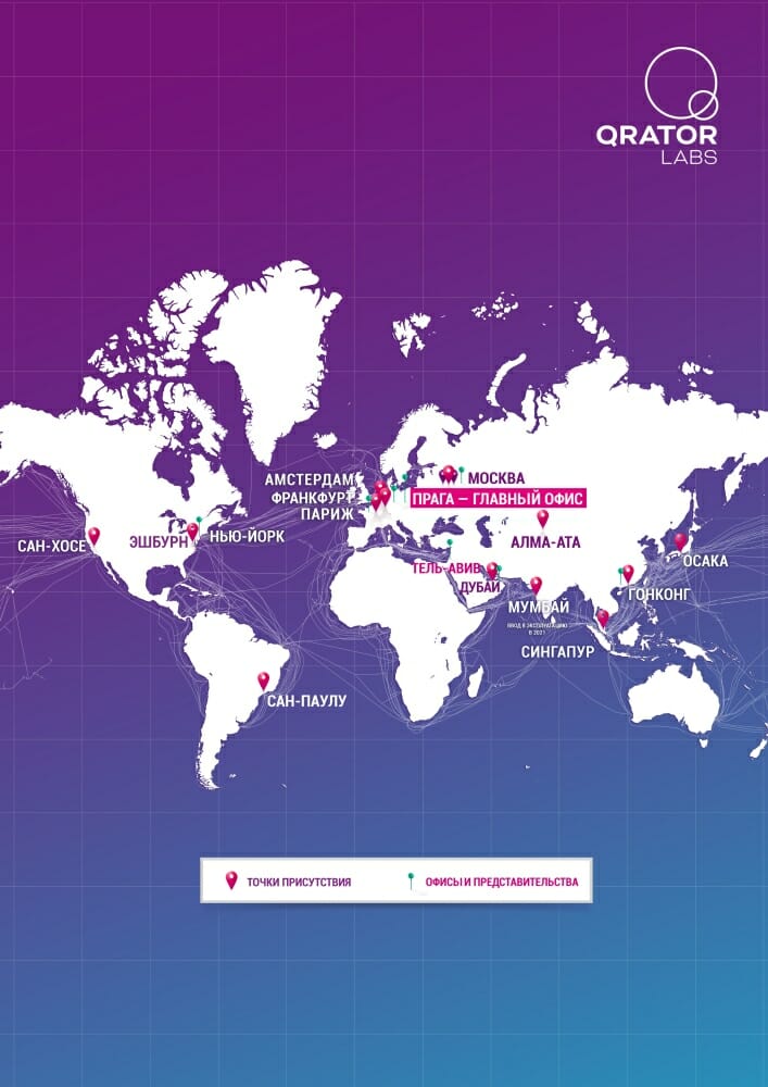 Сегодня сеть фильтрации Qrator Labs включает в себя 14 точек фильтрации: новый центр очистки трафика в Южной Америке, три узла в России, два — в США, три — на территории ЕС, четыре — в Азии и один — на Ближнем Востоке.