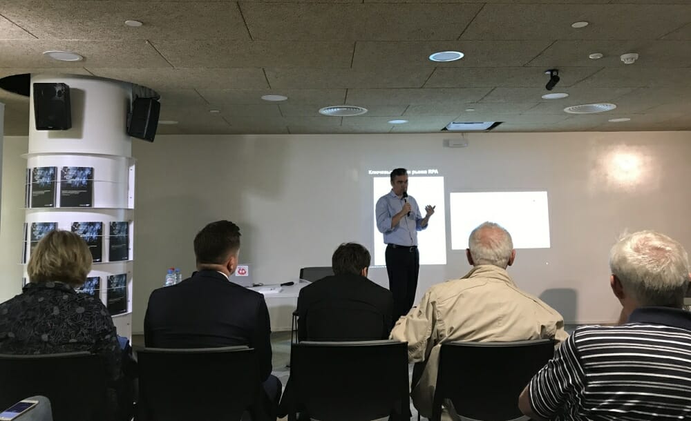 Для понимания сути технологии лектор провел параллель с концепцией Uber. Имеющаяся инфраструктура дополняется сервисом, и на этой основе предлагается услуга нового качества, что значительно упрощает для потребителя модель пользования ею. По аналогии с этим в RPA имеющаяся ИТ-инфраструктура снабжается надстройкой, умеющей работать с несколькими информационными системами, и за короткий промежуток времени бизнес получает результат.
