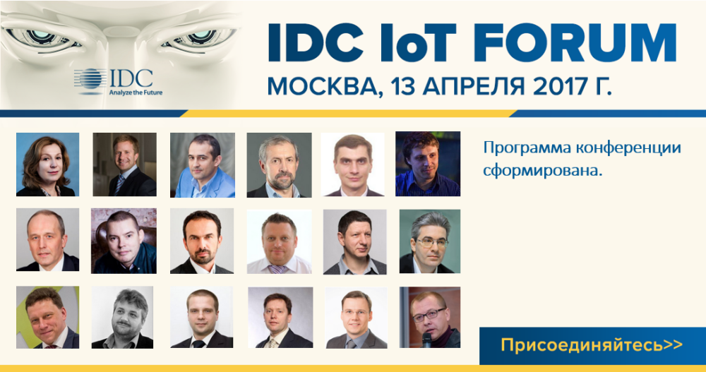 Сформирована программа второй ежегодной конференции «IDC IoT Forum 2017: На шаг впереди», которая состоится в Москве 13 апреля 2017 года. Программа включает в себя две сессии: основные тенденции развития Интернета Вещей и индустриальные сценарии использования IOT.