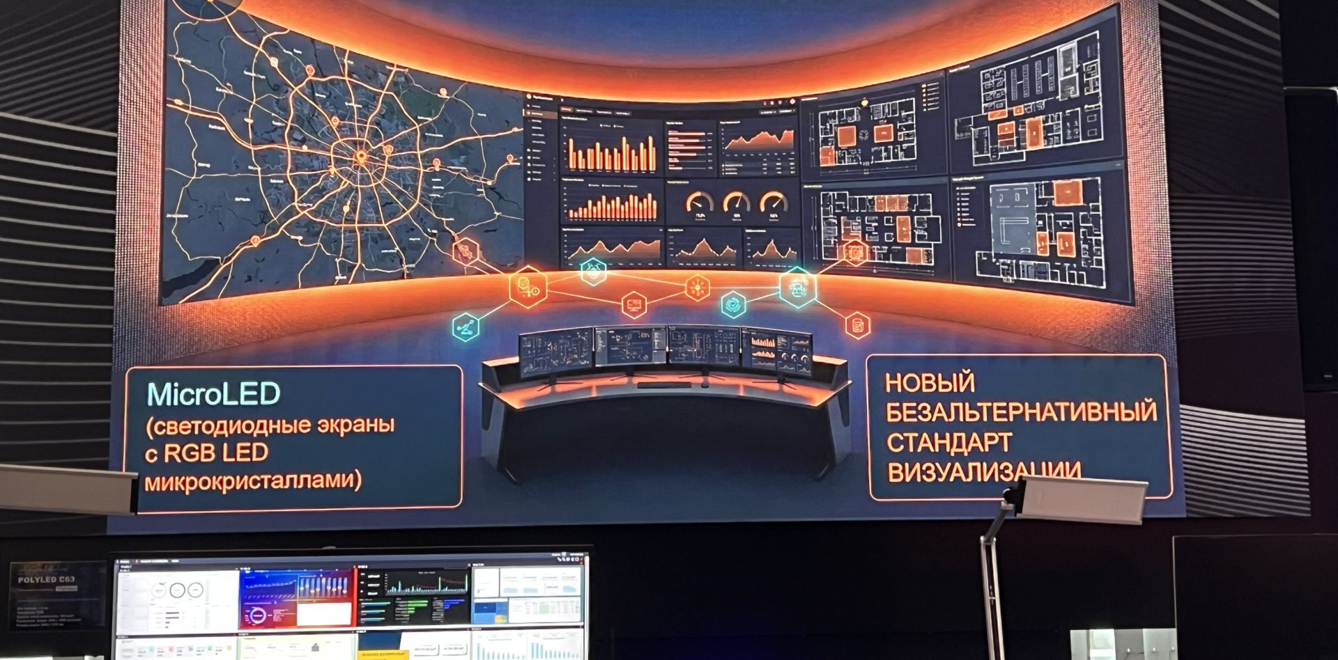 Глобальный тренд – смена технологий, применяемых для строительства экранов коллективного пользования. Видеостены – обязательный элемент любого центра управления. Сегодня доминируют технологии MicroLED (светодиодные экраны с микрокристаллами RGB LED). Технология избавилась от «детских болезней», оказывавших влияние на разрешение, качественное изображение всех деталей, и достигла зрелости. В этом смогли убедиться участники Polymedia Tech-Day 2026. Компания предоставила возможность ознакомиться с такими светодиодные экранами в конференц-зале своего офиса. Среди преимуществ оборудования – большой строк службы, приемлемая стоимость владения (ранее приходилось часто приобретать дорогостоящие расходные материалы, теперь обслуживание видеостен не требует внушительных вложений).