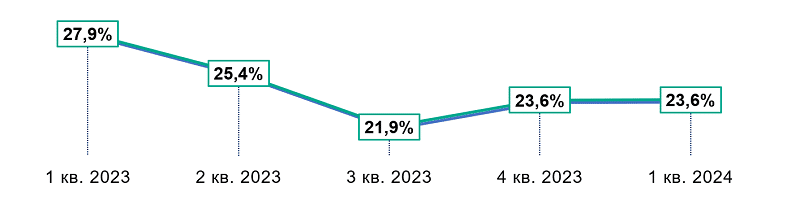 По итогам первого квартала 2024 года в России вредоносные интернет-ресурсы были заблокированы на 7,5% компьютеров АСУ. Значительная часть таких ресурсов используется для распространения вредоносных скриптов и фишинговых страниц (они были заблокированы на 4,6% компьютеров АСУ).