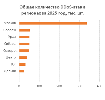 Отдельно стоит отметить снижение числа ударов на Южный федеральный округ (31,2, тыс. атак в 2025 году). Однако по словам экспертов большая часть самых мощных атак на телеком-отрасль происходила именно в этом округе — так хакеры хотят нарушить режим работы связи в этом регионе.