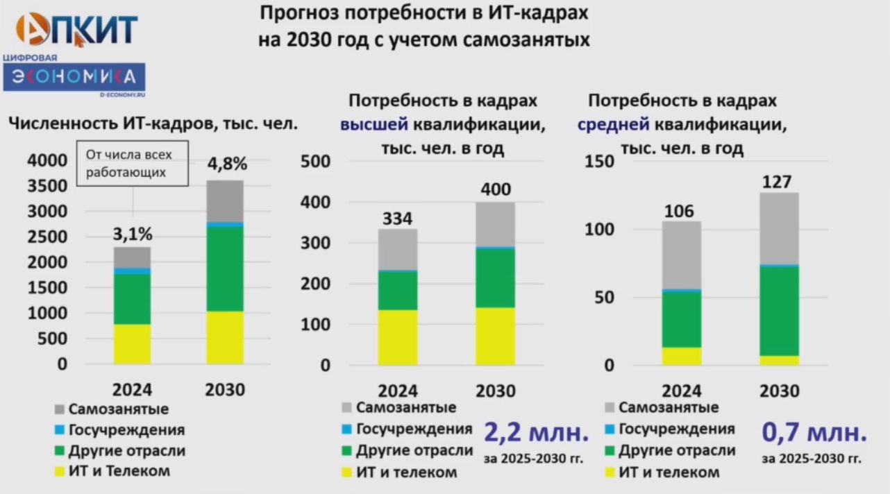 Федеральные государственные образовательные стандарты (ФГОС) были дополнены. Теперь иные специальности, относящиеся к ИТ, предусматривают приобретение таких умений, как разработка алгоритмов, создание компьютерных программ и т. д. Постепенно потенциал кадровых ресурсов в сфере ИТ увеличивается.