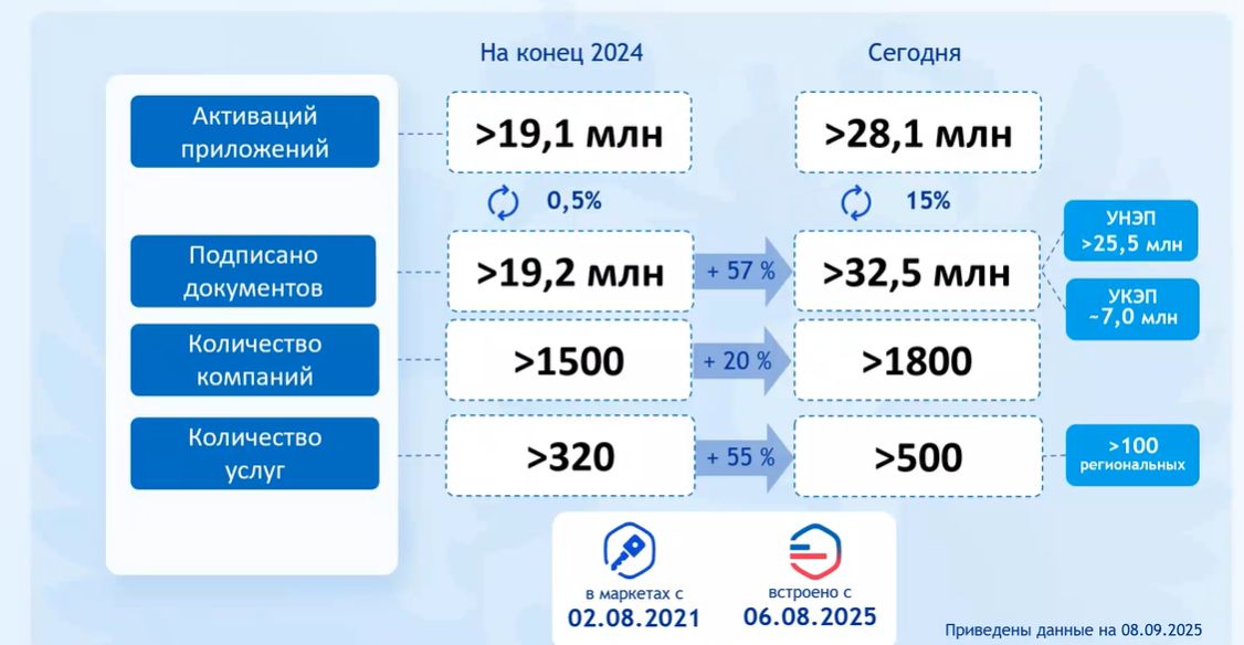 До конца 2024 г. мобильное приложение использовалось преимущественно однократно (повторно – не более 1%). По состоянию на сентябрь 2025 г. показатель повторного применения установленного экземпляра приложения, когда подписывается более одного документа, превысил 15%.