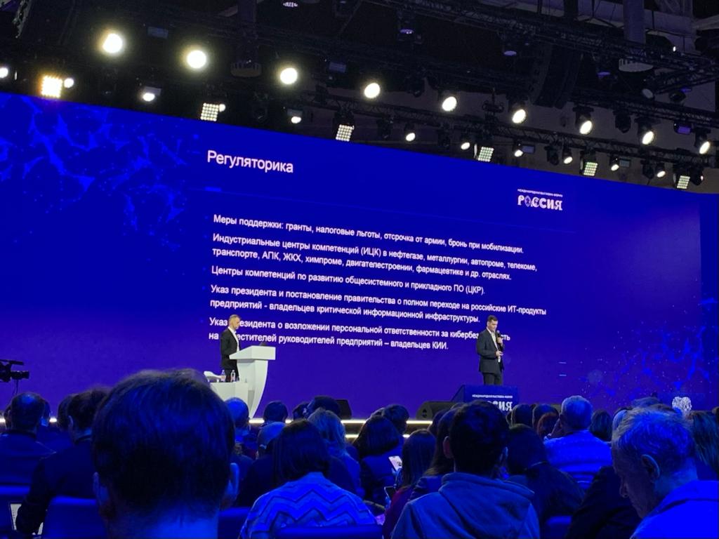 Мероприятие началось с раздела, посвященного телекоммуникациям. Дмитрий Чернышенко, заместитель председателя Правительства Российской Федерации, подробно рассказал о впечатляющих достижениях РФ в области информационных технологий. Он отметил, что наша страна занимает заслуженное место среди мировых лидеров и обладает значительным потенциалом по разработке и внедрению отечественных решений в области ИИ. Дмитрий Чернышенко привел впечатляющие факты: МЧС достигло 92% точности расчета рисков возникновения пожаров в термических точках Земли, а объем российского рынка ИИ составляет 650 млрд руб., что означает прирост в 18% по сравнению с 2021 г. Более тысячи российских компаний-разработчиков заняты в сфере ИИ, свыше 90 исследовательских центров работают в этой сфере. Уже достигнут рубеж 87% точности постановки диагноза по 95 заболеваниям во всех взрослых поликлиниках Москвы. Дмитрий Чернышенко также подчеркнул значительный прогресс в цифровой трансформации экономики: если в 2019 г. цифровая зрелость отраслей составляла 32%, то сегодня она превышает 74%. Количество пользователей портала госуслуг увеличилось почти вдвое и достигло 109 млн человек.