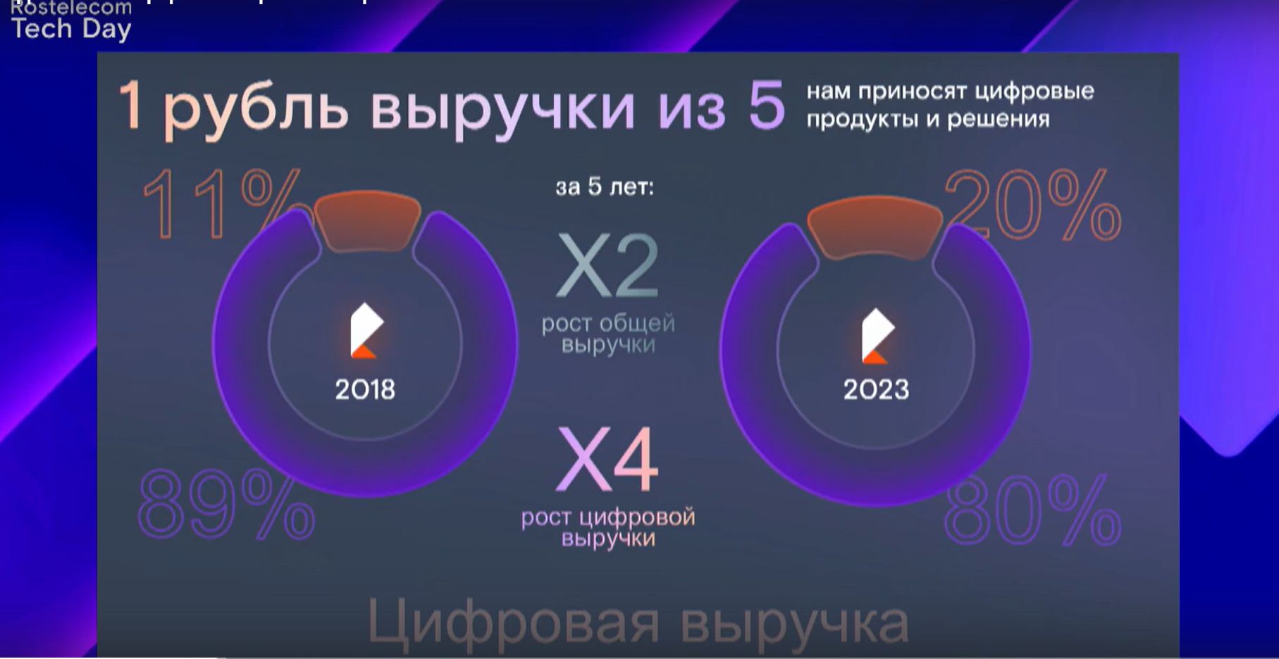 Открывая первый RTD 2023, президент ПАО «Ростелеком» Михаил Осеевский приветствовал участников премьерного показа, анонсировал конвергенцию технологий, искусства и бизнеса как единого мира и выразил надежду, что мероприятие станет ежегодным. За последние годы «Ростелеком» прошел большой путь трансформации из телеком-оператора в современную цифровую компанию, которая предлагает свои услуги и государству, и бизнесу, и людям. В этом году выручка «Ростелекома» по цифровым направлениям превысила 20% и продолжит расти. В новой стратегии на период до 2030 г. которую компания разрабатывает, эта тенденция усилится.
