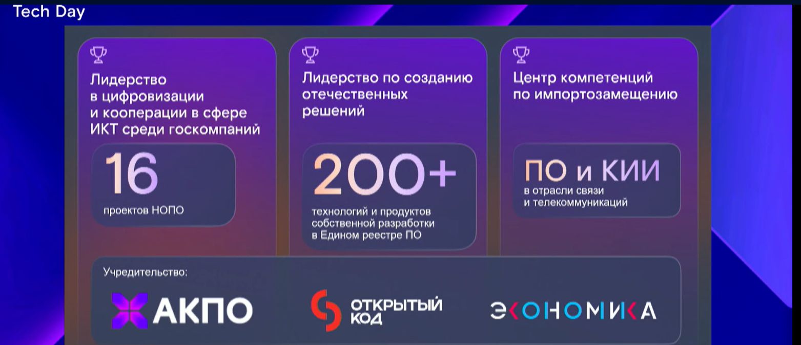 В первой декаде декабря прошел первый Rostelecom Tech Day (RTD 2023), в рамках которого компания продемонстрировала новые ИТ-платформы и решения для бизнеса. Эксперты «Ростелекома» рассказали о преимуществах технологий и продуктов для заказчиков в различных отраслях. Участники RTD 2023 обсудили ключевые тенденции в ИТ-индустрии по таким направлениям, как искусственный интеллект, облачные сервисы, мобильная экосистема, информационная безопасность, облачные сервисы, большие данные, разработка ПО. Ожидается, что Rostelecom Tech Day станет ежегодным.
