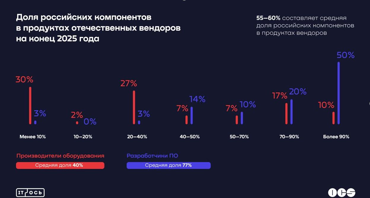 Дистрибьютор OCS занимает уникальную позицию на рынке: ведет запросы вендоров, анализирует ожидания заказчиков и трудности, возникающие в рамках логистических цепочек. Компания опросила более 100 российских вендоров – производителей ИТ-оборудования и разработчиков программного обеспечения, чтобы выяснить, каких результатов добились российские производители «железа» и ПО в локализации своих решений.