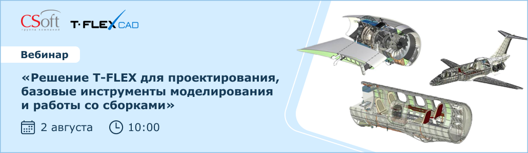Специалисты ГК «СиСофт» (CSoft) продолжают знакомить пользователей САПР-систем с функциональными возможностями T-FLEX и приглашают слушателей 2 августа в 10:00 (Мск) на вебинар «Решение T-FLEX для проектирования, базовые инструменты моделирования и работы со сборками».