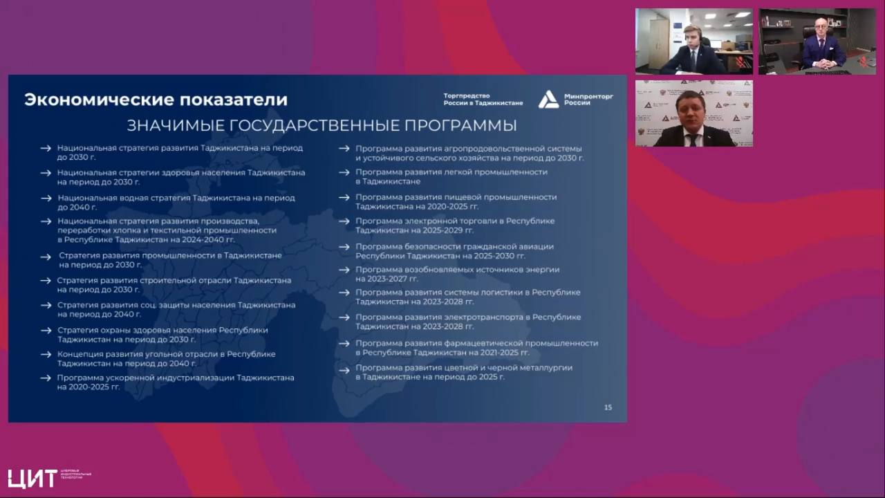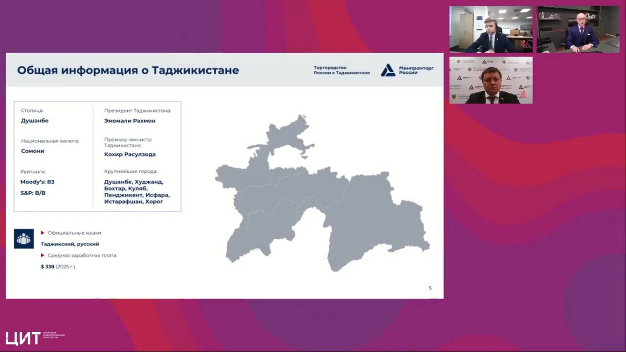 Рынок Таджикистана открывает новые перспективы для российских ИT-компаний, но требует четкого понимания его специфики. Какие ниши наиболее перспективны? С какими законодательными и практическими барьерами придется столкнуться? Ответы на эти вопросы искали участники экспертного вебинара, посвященного возможностям и вызовам цифрового экспорта в Республику Таджикистан. Мероприятие, организованное Проектным офисом Службы «цифровой атташе» ФГАУ ЦИТ при поддержке АНО «Цифровая экономика», стало практической картой для бизнеса, желающего выстроить эффективную стратегию выхода на этот динамично развивающийся рынок.